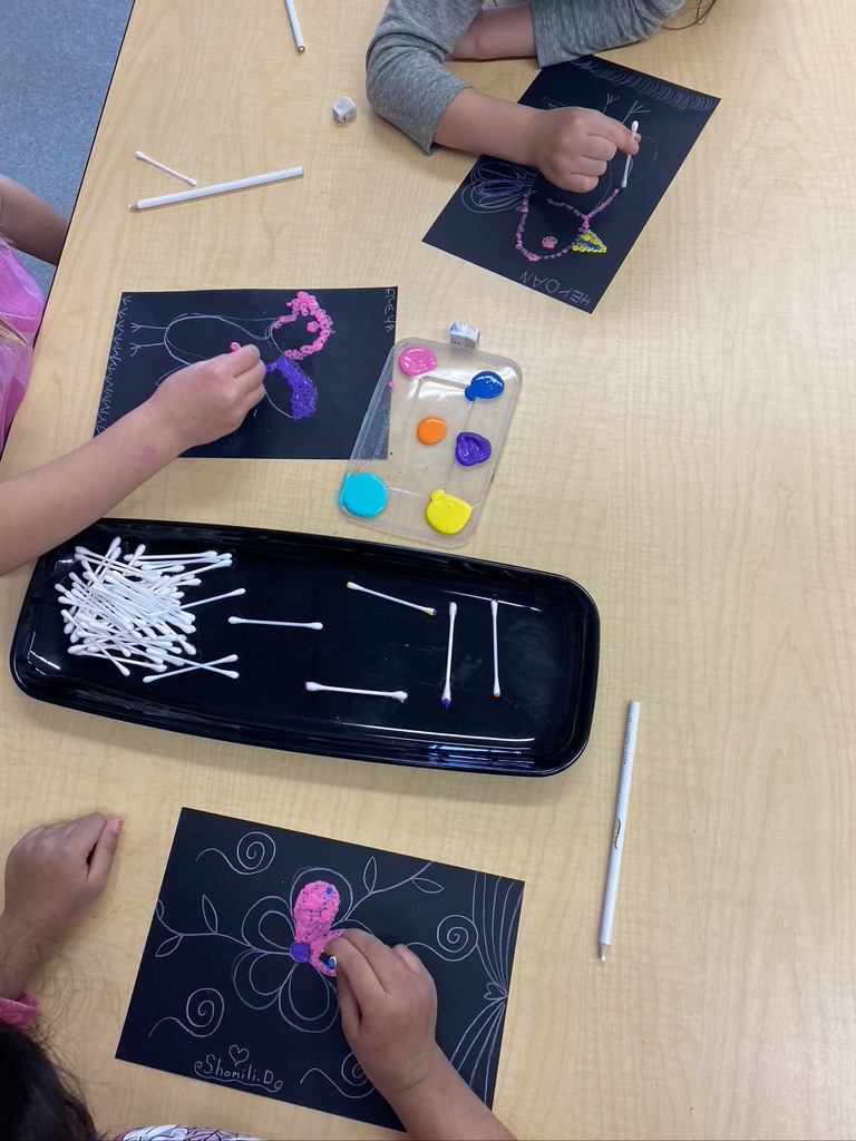 We focussed on Metis artist, Christ Belcourt's beautiful works of art and learned that dot art is usually symmetrical and usually includes one dot(or bead) that is different. This dot is called the "Spirit" bead which symbolizes it is ok to make mistakes, be unique and to be ourselves. Students loved creating their own Dot art!